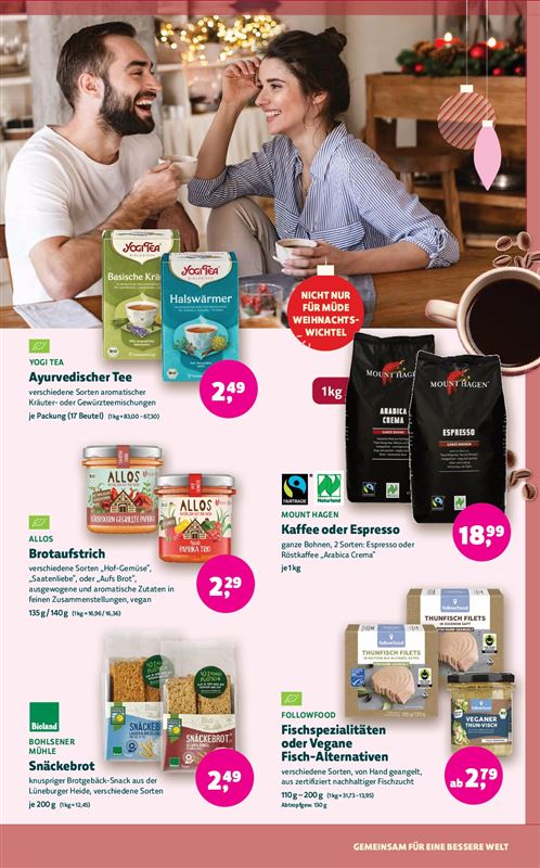 Knusprige backwaren und hausgemachte Kuchen von ausgewählten Biobäckern, Bio-Kaffee in verschiedenen Variationen