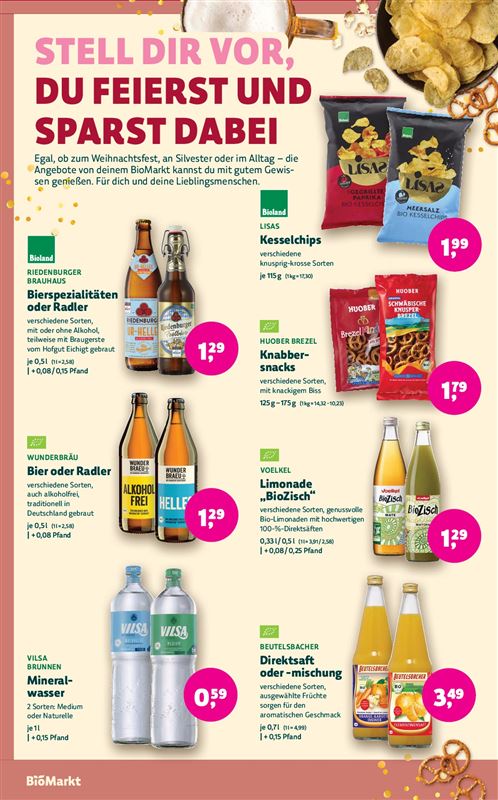 Natürliche Säfte, Mineralwasser, Bier, Wein und Spirituosen in großer Auswahl