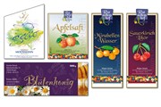 Etikettengestaltung mit eigenen Illustrationen (obere Reihe). Streck Honig, Riegel; Ristsimonhof, Freiamt; In freier Mitarbeit im Auftrag von connex kreativ marketing GmbH, Sexau: Weingut Moosmann, Waldkirch-Buchholz;