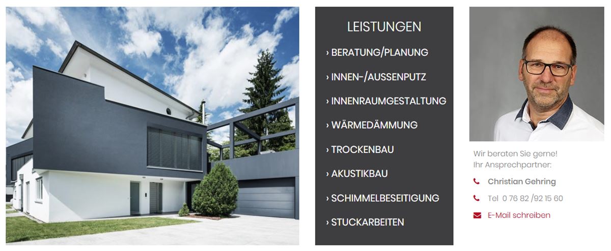 Stuckateur-Meister Christian Gehring zeichnet sich aus durch fachmännisches Können und langjährige Berufserfahrung. Es werden hochwertige Materialien verwendet und die Mitgliedschaft im Fachverband der Stuckateure für Ausbau und Fassade ermöglichen Wissen und Fortbildung auf dem neuesten Stand.