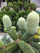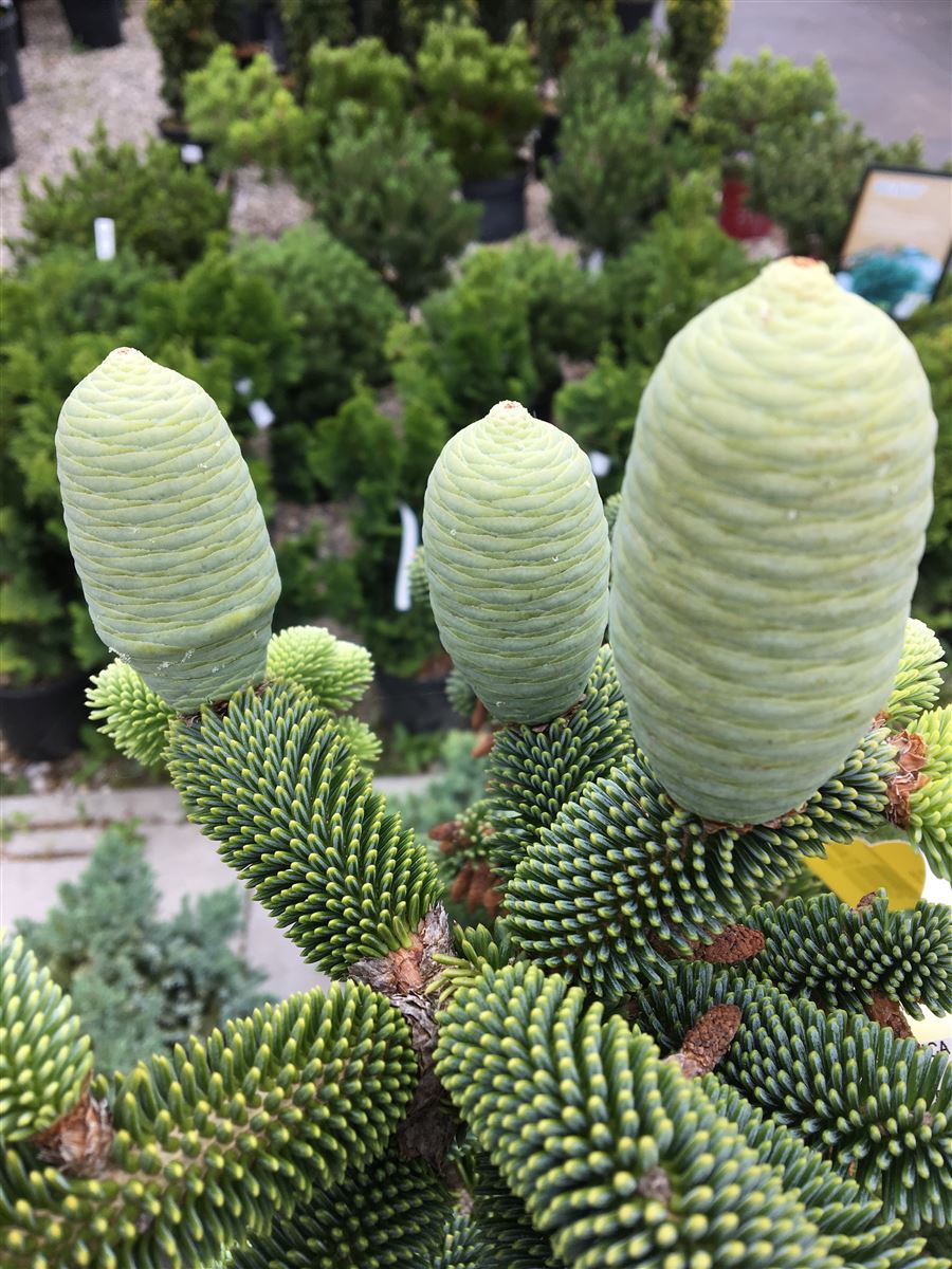 Algier-Tanne (Abies numidica), in irischer Sprache Giúis Ailgéarach genannt, mit jungen Zapfen. Diese Tannenart ist in Nordafrika heimisch, gedeiht aber auch in Deutschland und in Irland.