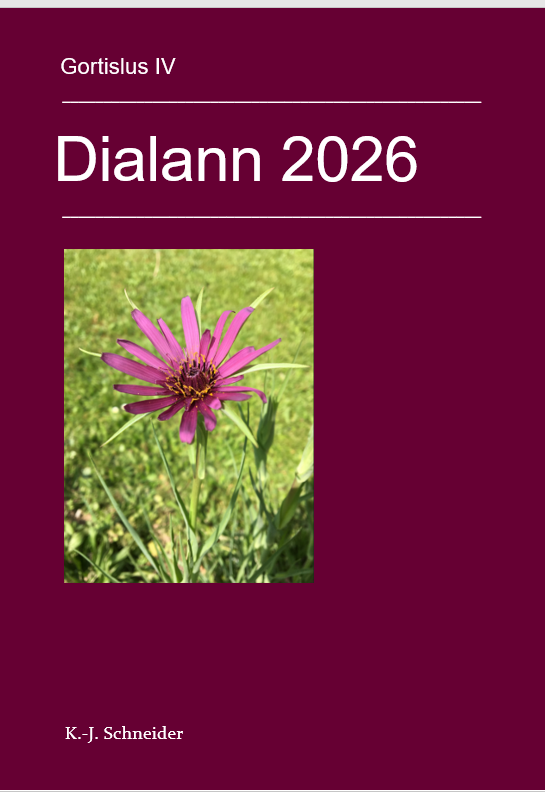 Der Dialann ("Buchkalender") 2026, erschienen in der Gortislus-Reihe, ist der irisch-deutsche zweisprachige Gärtner-Jahresplaner der unabhängigen Vereine SHA und DFmC, die am Rekonstruktionsprojekt "Der Juwelengarten" beteiligt sind.