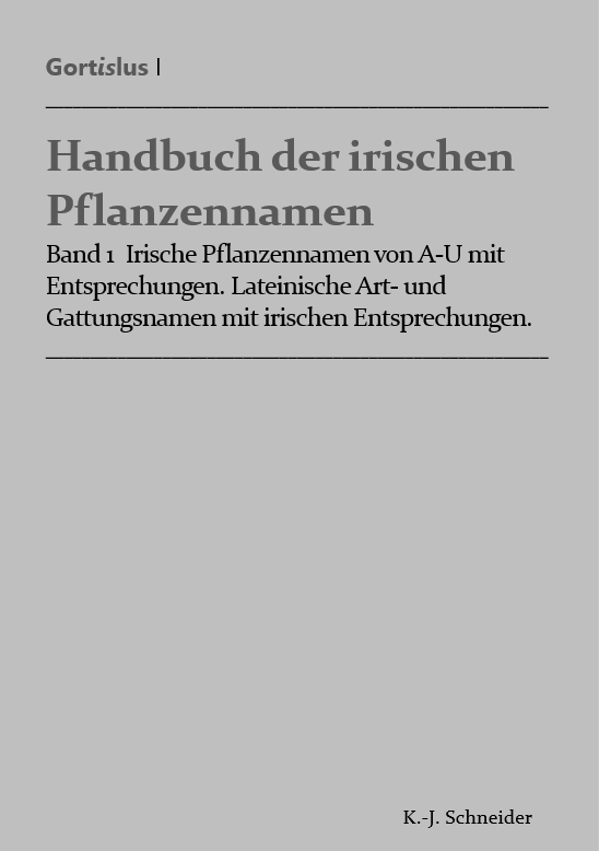 Das als mehrbändiges Werk geplante Handbuch der irischen Pflanzennamen wird einen umfangreichen Einblick in den alten und neuen Pflanzennamenschatz einer modernen keltischen Sprache und einer der ältesten Literatursprachen Europas bieten. Erschienen ist bisher in vorläufiger Fassung der erste Teil und Band mit 320 Seiten als Arbeitsmittel für die Beteiligten am Rekonstruktionsprojekt "Der Juwelengarten". Die zweite, korrigierte und vermehrte Auflage erscheint vorraussichtlich im Juli 2026.