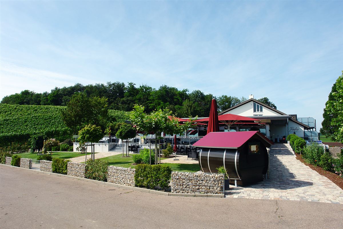 Inmitten von Weinreben beeindruckt Köpfers Steinbuck in Bischoffingen vor allem durch den fantastischen Panorama-Weitblick über den Kaiserstuhl bis zu den Vogesen.