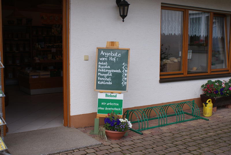 Das Warenangebot im Hofladen ist sehr unfangreich: von Mehl bis zum Ruccola - hier bekommen Sie alles.